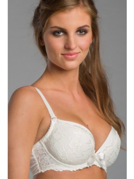 Podprsenka Ewa Michalak Grace v jemné ivory barvě je vhodná také pro nevěsty. Má odnímatelné vycpávky pro korekci asymetrie poprsí. Ramínka jsou odepínací, lze zapnout také do kříže. Výborně sedí také ve větších velikostech a je vhodná do výstřihu. Do sady také nádherné kalhotky a podvazkový pás. Podprsenka má ve skutečnosti menší mašličky, než jaké mají modelky na podprsence (viz. fotografie).