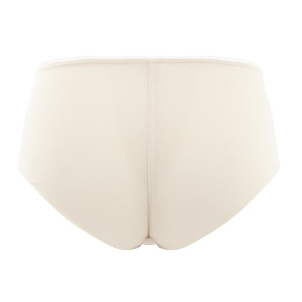 Kalhotky šortkového střihu do kompletu k podprsence Panache Cari v praktické tělové barvě. Kalhotky jsou v přední části z neprůhledného matriálu, po bocích jsou zdobeny jemnou výšivkou s moderním jednoduchým vzorem. V zadní části jsou kalhotky po okraji bezešvé a nerýsují se pod oblečením. DOPORUČUJEME ZVOLIT O ČÍSLO MENŠÍ VELIKOST NEŽ OBVYKLE.