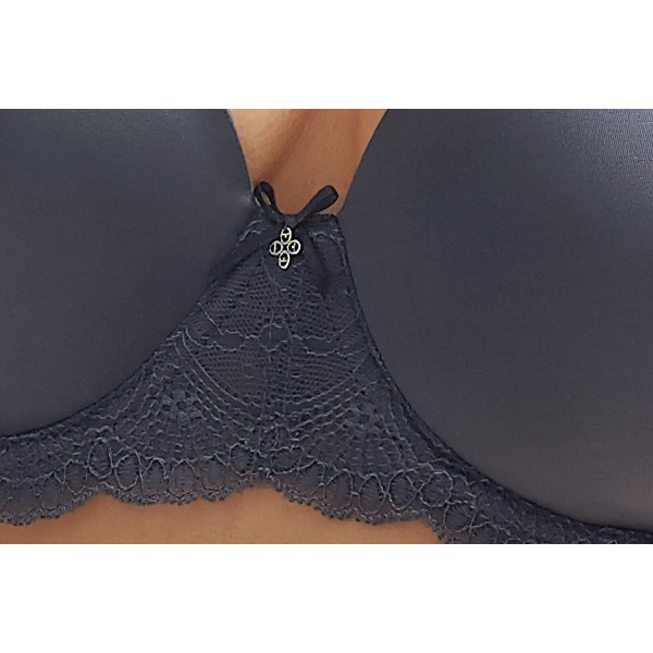 Ardour je luxusní podprsenka vhodná pro každodenní nošení, velmi oblíbená - bestseller! Má nádhernou tmavě šedou barvu s jemným leskem. Hodí se pod barevné a tmavé oblečení. Podprsenka má hladké tvarované košíčky, srdíčkový střih. Jemné krajkové zdobení po obvodu a zajímavé lemování na ramínkách dodává podprsence na jejím půvabu. Dokonalé propracování do posledního detailu. 50% PA, 42% PL, 8% EA