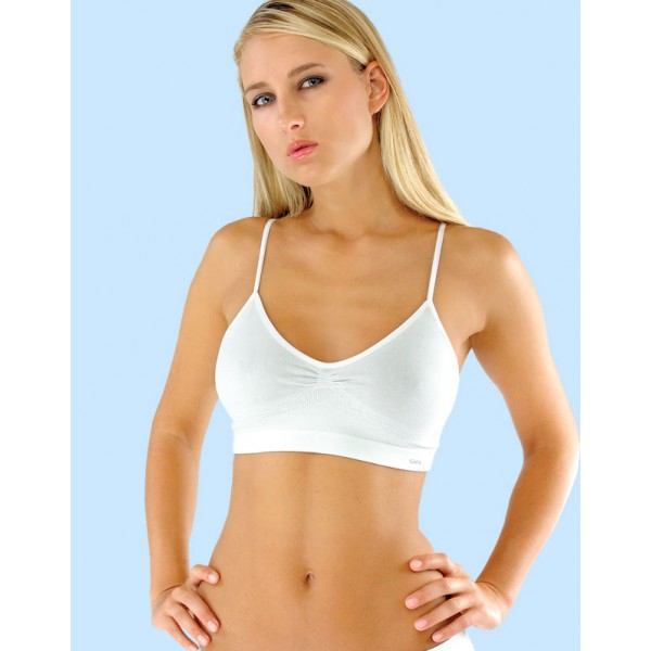 Bezešvá podprsenka z mikrobavlny Gina 07001 v bílé barvě s tenkými ramínky. Podpsenka je vyrobena z kvalitní jemné česané bavlny, která díky speciální technologii predení získává mimořádné vlastnosti - podprsenka je velmi příjemná, přitom ale pevná a barevně stálá. Tato podprsenka je vhodná na domácí nošení nebo na spaní. Velmi příjemný materiál. Složení : 80% bavlna 12% elastan 8% polyamid