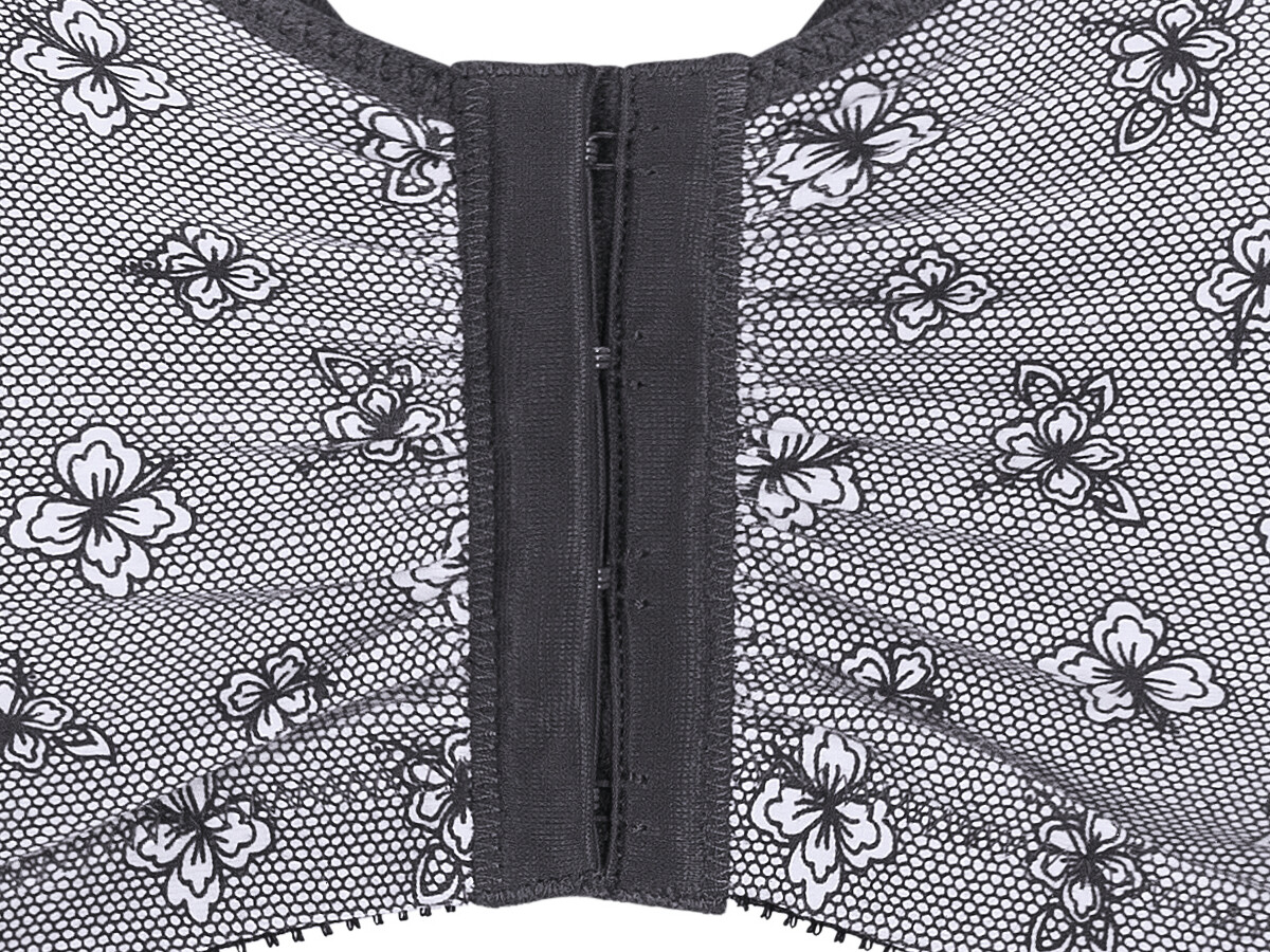 Frances je jemná nevyztužená podprsenka bez kostic s vysokým obsahem bavlny. Je krásně pružná, pohodlná, má jednořadé zapínání z přední strany. Oceníte také rozšířená elastická ramínka pro maximální pohodlí. Podprsenka má oboustranné kapsičky pro bezpečné uložení prsní epitézy a je vhodná k nošení všech druhů epitéz (jak textilních pooperačních tak posléze silikonových epitéz). Podprsenka má jemnou šedo-bílou barvu s decentním květinovým potiskem.