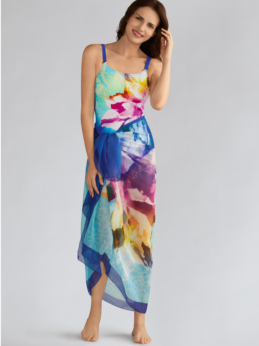 S tímto krásným pareem se budete na dovolené cítit úžasně. Má nádherný vzor akvarelového květu a v kombinaci s královskou modří je zkrátka nepřehlédnutelné. Díky jemnému materiálu rychle schne a nemačká se. Rozměr 118 cm x 158 cm, je dostatečně dlouhé, abyste ho mohla nosit hned v několika možných variantách - složit ho jako šátek, zabalit se do něj kolem pasu a mít ho jako dlouho sukni; nebo třeba přehodit přes ramena či zavázat jako ručník u prsou.