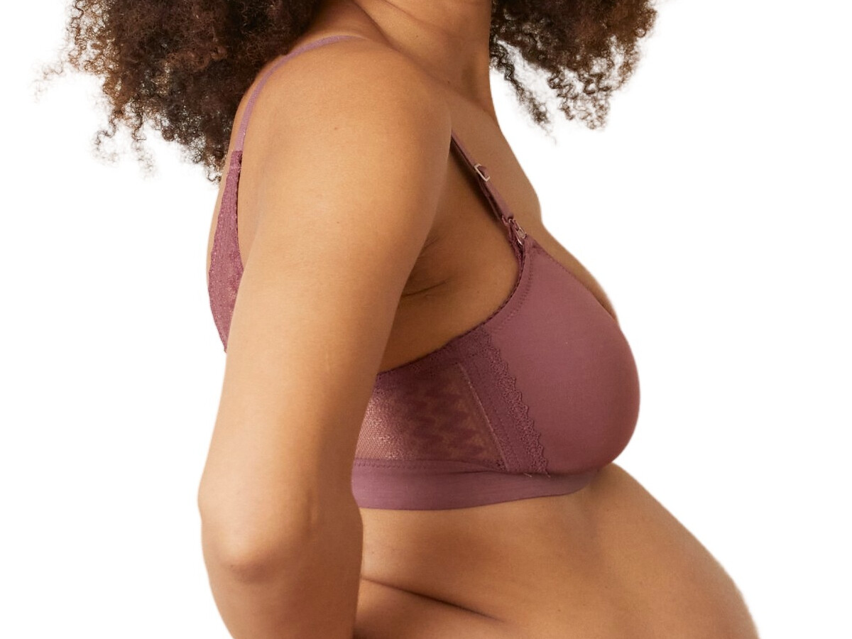 Kojicí podprsenka Serena francouzské značky Cache Coeur má nevyztužené tvarované košíčky a je bez kostic - obsahuje pouze boční kostice, aby prsa lépe posunula k sobě. Košíček kombinuje vnější vrstvu z jemného mikrovlákna a vnitřní bavlněnou vrstvu pro pocit pohodlí i při zvýšené citlivosti poprsí v tomto období. Hladký bezešvý košíček bude téměř neviditelný pod přiléhavými oděvy a výstřih do "V" zaručí variabilitu podprsenky také pod topy s hlubším výstřihem. Hladká ramínka jsou nastavitelná v přední části. Na zádech je s obvodem spojují elegantně střižené díly z italské krajky s geometrickým vzorem. Tento efekt najdete na zádech i v bočním dílu a působí velmi žensky a podprsenka tak zaujme na první pohled. Rozšířený boční i zádový díl a širší pružná guma po obvodu podprsenky zaručí pohodlí v podprsence. Zapínání je na 4 řady háčků tak, abyste mohla pohodlně upravovat délku obvodu podprsenky, který se bude zejména v období před porodem a po porodu rychle měnit. Tradiční kojicí klipy poskytují snadný přístup pro kojení a zvládnete je odepnout také jednou rukou. Tento model je velikostně více flexibilní, proto je očíslován pro dvoj-velikosti košíčku. Pokud si nevíte rady, jakou velikost zvolit, kontaktujte nás. Moc rády vám pomůžeme vybrat.