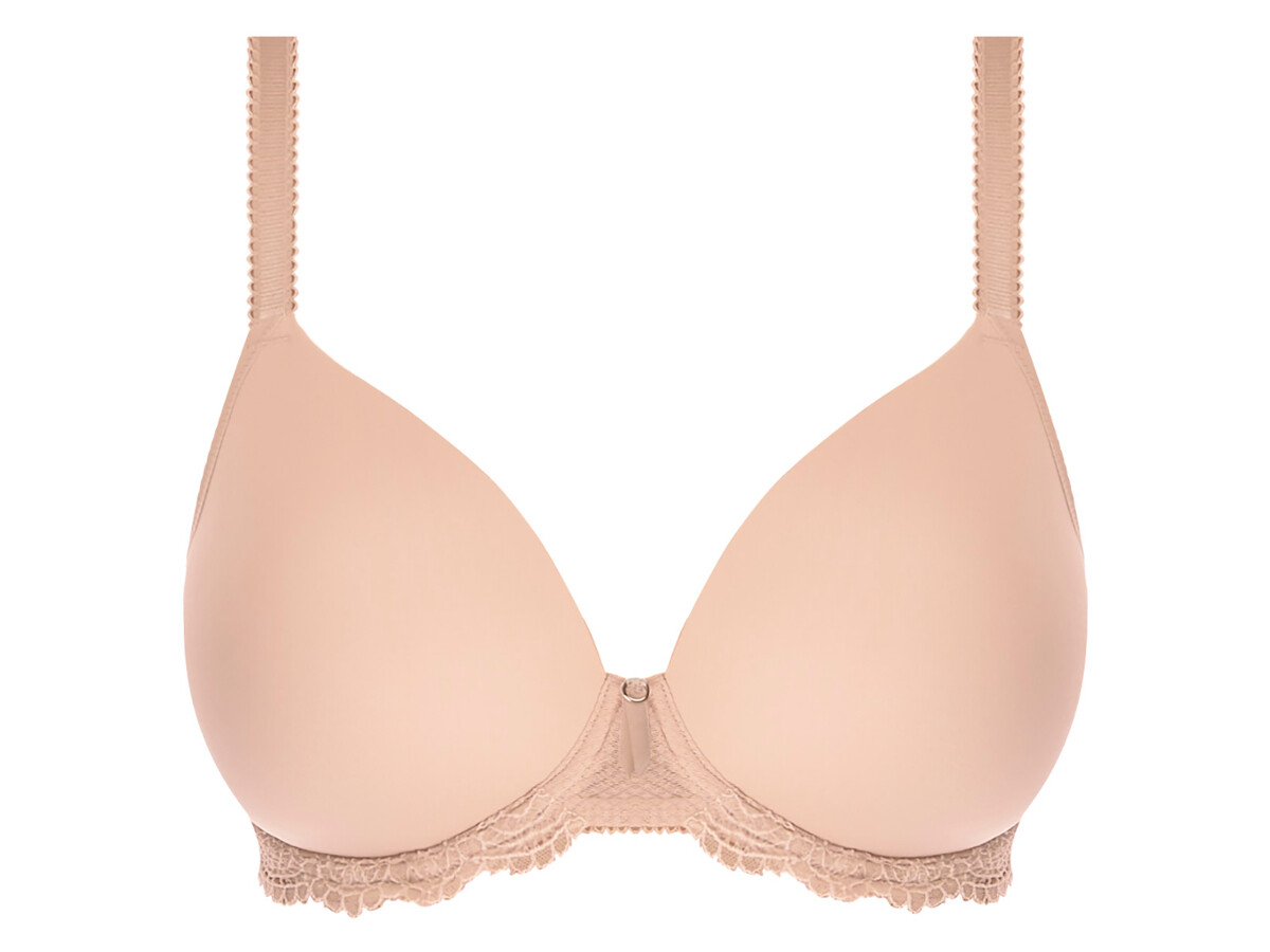 Podprsenka Freya Expression je další z řady podprsenek, které jsme si velmi oblíbily. Tento vyztužený model je tzv. "demi plunge", tedy střed podprsenky je vyšší, ale stále drží poprsí krásně u sebe a vytváří tak plný dekolt. Vyšší střed zároveň krásně podpoří také méně pevné poprsí. Díky hladkému tvarovanému košíčku se podprsenka nebude rýsovat pod oblečením. Obvod je zdoben půvabnou háčkovanou krajkou, jako je to u dalších podprsenek z této řady. Ramínka jsou jemně zdobená a délkově nastavitelná. Střed podprsenky zdobí decentní saténová stuha s jemným kovovým detailem. Tento model je univerzálním kouskem, který je praktický a zároveň skvěle vypadá. V této barvě je podprsenka ideální pod světlé a bílé oděvy.