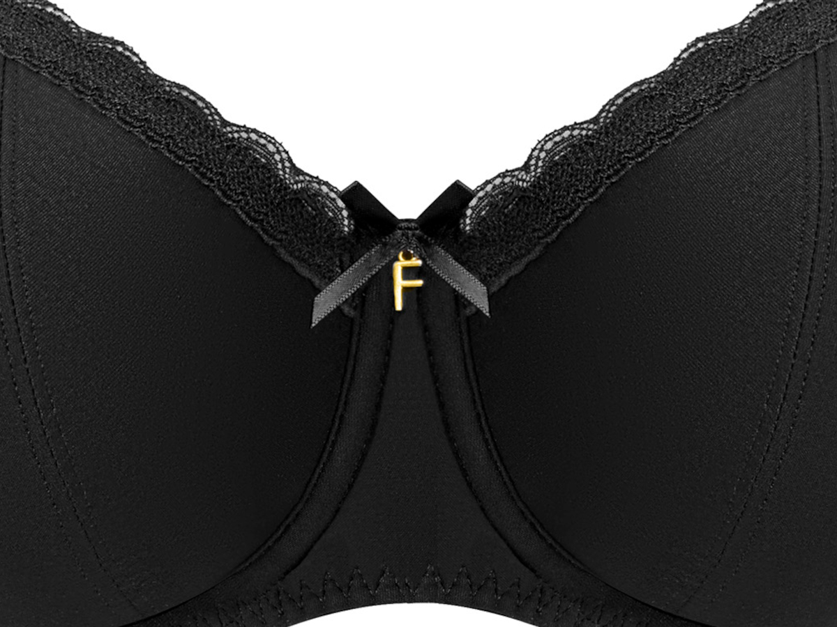 Novinkou z dílny oblíbené značky Freya je model Flirt. Podprsenka má tzv. střih "half cup", který je velmi podobný balkonovým podprsenkám. Košíček je jemně vyztužený a není pevně tvarovaný. Díky tomu se lépe přizpůsobí tvaru poprsí. Hodí se také na méně pevné poprsí, které podpoří a nadzvedne. Švy na košíčkách jsou zpracované do hladka a nebudou se rýsovat pod oblečením. Super měkká tkanina modal od značky Tencel zajistí pohodlí po celý den. Ramínka jsou velmi měkká, pohodlná a plně nastavitelná. Jemný krajkový lem na okraji košíčků a mašlička s přívěskem s iniciálou F uprostřed přední části dodávají podprsence na eleganci. Černá barva ze stálé kolekce se hodí zejména pod tmavé a tmavě barevné oděvy.