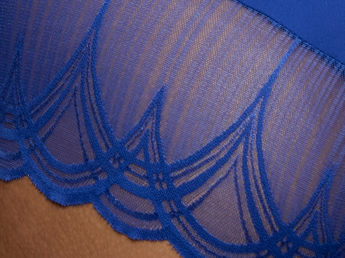 Luxusní elegantní kalhotky s vyšším pasem z kolekce Cathia od značky Marie Jo vytváří stylovou retro siluetu. Kalhotky jsou v horní části z jemného mikrovlákna. Spodní část je ze stejné krajky, která tvoří zadní díl ramínek podprsenky. Krajka poskytuje větší krytí na zadečku, kalhotky přesto působí lehce a elegantně. Zakončení krajky je hladké, takže se kalhotky nikde nezaříznou a budou neviditelné pod oblečením. Bavlněný klínek pro maximální komfort je samozřejmostí. V kombinaci s podprsenkou ze stejné kolekce získáte moderní a nezapomenutelný komplet.