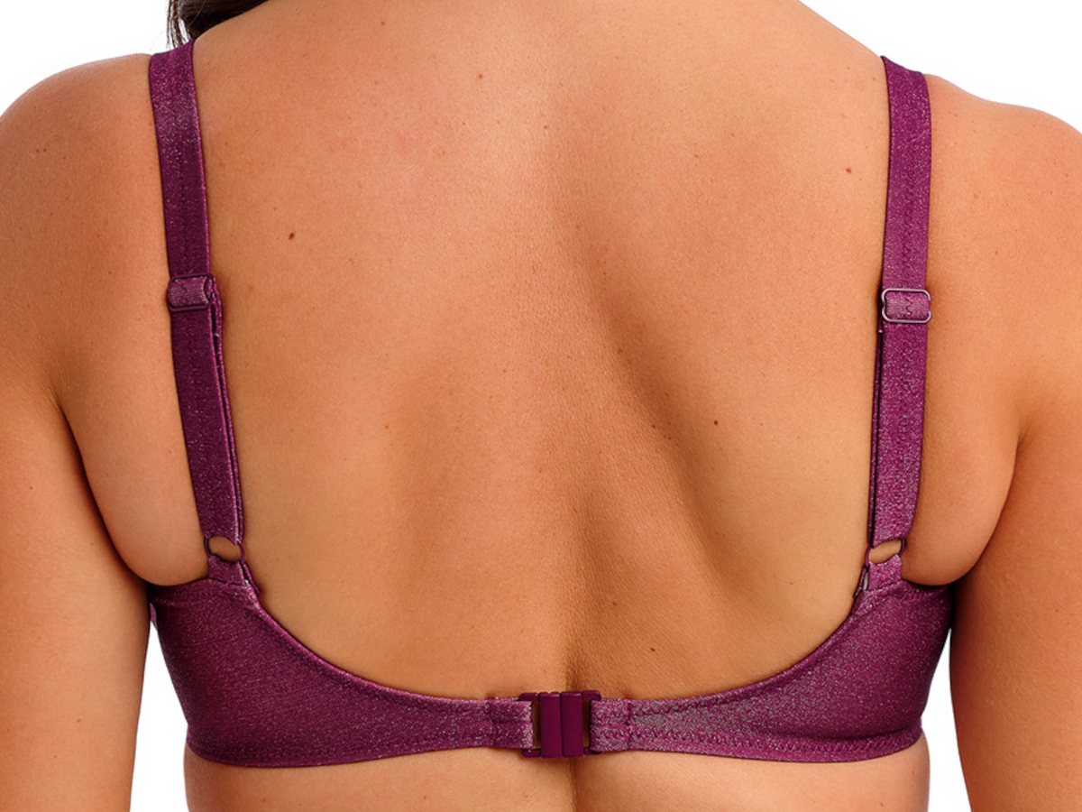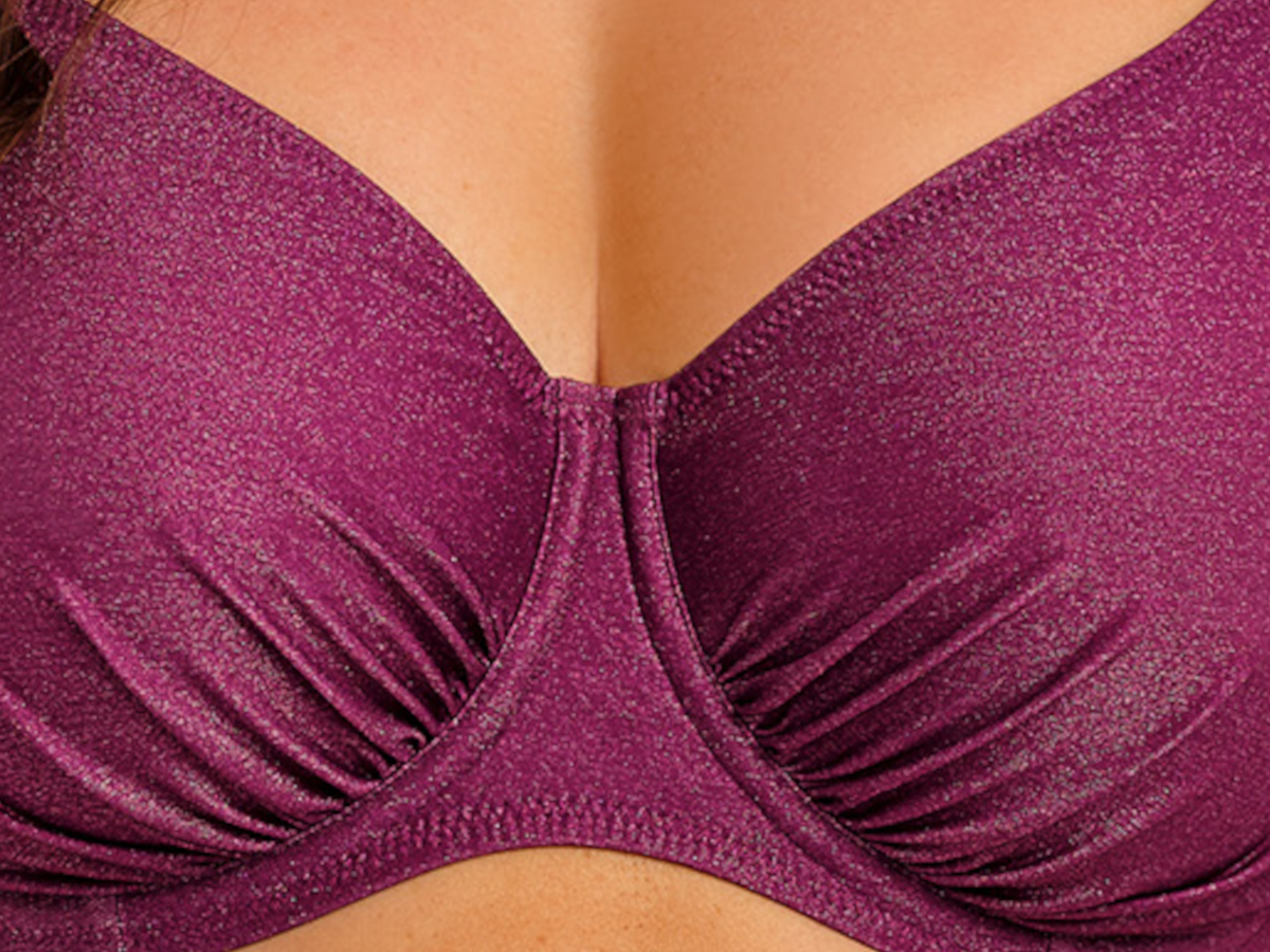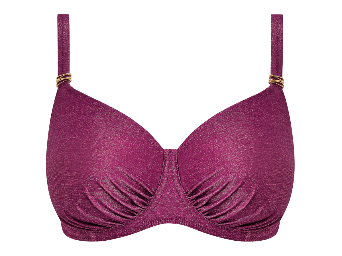 Objevte nadčasovou eleganci plavek Fantasie Paros Coast v sytě fialové barvě. Materiál se díky obsahu kovového vlákna jemně třpytí a dodává celé kolekci na eleganci. Vrchní podprsenkový díl ve střihu full cup má klasický střih s vyšším středem a s větším krytím ve výstřihu. Nařasené košíčky lichotí všem tvarům poprsí. Vnitřní třídílný košíček prsa krásně vytvaruje a díky boční opoře je drží hezky u sebe. Obvod je podšitý síťovinou Powernet pro lepší podporu a má zapínání na klasickou pevnou plavkovou sponu. Pevná ramínka jsou samozřejmě výškově nastavitelná. Doplňky na ramínkách ve zlaté barvě, které se na slunci nezahřívají, dodávají plavkám na jejich jedinečnosti. PLAVKY PRODÁVÁME POUZE JAKO KOMPLET, PŘIDEJTE PROSÍM DO KOŠÍKU TAKÉ SPODNÍ DÍL, POKUD JE DOSTUPNÝ. Na výběr jsou dva střihy plavkových kalhotek, které najdete v doporučeném souvisejícím zboží.