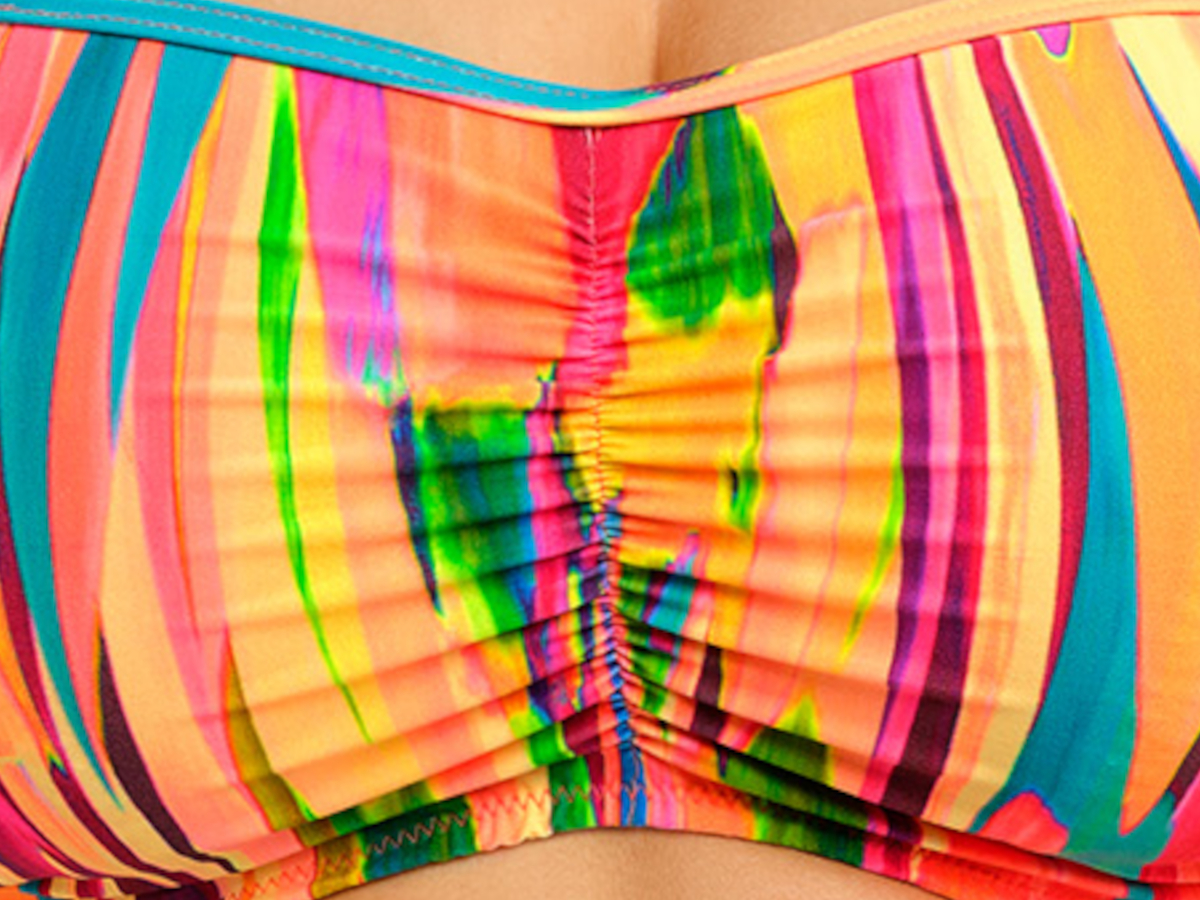 Oslavte léto v plavkách Freya San Antonio v zářivé barevné kombinaci Fiesta. Plavkový top má nevyztužené košíčky s kosticí a jemnou podšívkou, která krásně vytvaruje a podpoří i plnější poprsí. Nařasení z vnější strany uprostřed plavkového topu je velmi lichotivé, nařasení na bočních švech naopak dodá tvar a objem. Ramínka jsou multifunkční, dají se vzadu zapnout do kříže nebo zcela odepnout. Top má navíc odnímatelnou šňůrku, která se zavazuje za krkem, a zároveň můžete upravit hloubku dekoltu. Plavky se vzadu zapínají na pevnou plastovou sponu. PLAVKY PRODÁVÁME POUZE JAKO KOMPLET, PŘIDEJTE PROSÍM DO KOŠÍKU TAKÉ SPODNÍ DÍL, POKUD JE DOSTUPNÝ. Na výběr jsou dva střihy plavkových kalhotek, které najdete v doporučeném souvisejícím zboží.