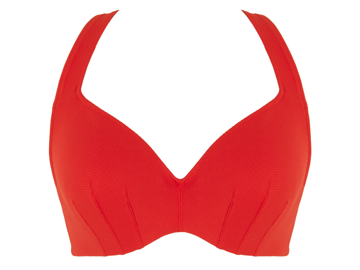 Plavky Panache Aurora jsou navrženy tak, aby lichotily každé křivce a vypadaly úžasně v každé velikosti. Jsou vyrobeny z materiálu, který imituje včelí plástev, je pletený ve Španělsku a pro letošní sezónu je v nádherné červené barvě. Vrchní díl plavek je s kosticí a má nevyztužené dvouvrstvé košíčky. Kostice je skrytá, poskytne dostatečnou oporu i pro větší velikosti a zároveň dodá hladký vzhled. Elegantní paprskovité záševky zajistí v košíčku dostatek prostoru, zatímco tvarovaný bezešvý vnitřní košíček poskytne pohodlné nošení na pokožce. Střih plavek nabízí hlubší výstřih do véčka a zároveň košíček plynule přechází do širších ramínek, která jsou vzadu plně nastavitelná a dají se sepnout do kříže. Podšívka obvodu je z elastické síťoviny pro lepší podporu a komfortní nošení. Zadní díl se zapíná na klasickou plavkovou sponu. PLAVKY PRODÁVÁME POUZE JAKO KOMPLET, PŘIDEJTE PROSÍM DO KOŠÍKU TAKÉ SPODNÍ DÍL, POKUD JE DOSTUPNÝ. Kalhotky najdete v doporučeném souvisejícím zboží.