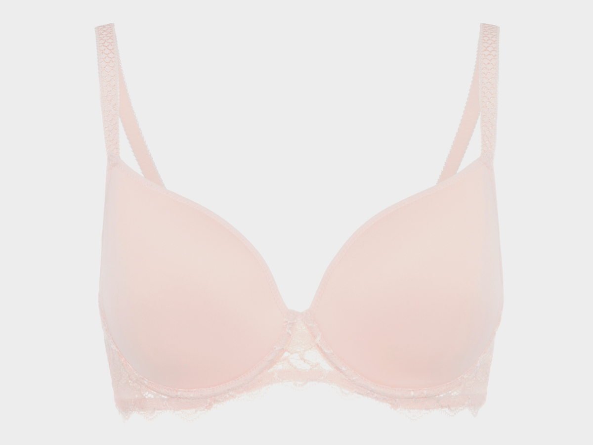 Elegantní podprsenka Carrese od Simone Perele díky technologii 3D spacer košíčku zajišťuje maximální pohodlí pro běžné nošení. Košíček je prodyšný, měkký a krásně se přizpůsobí každému tvaru prsou. Hladké košíčky se hodí pod přiléhavé oděvy, kde bude podprsenka naprosto neviditelná. Zdobení jemnou krajkou po obvodu podprsenky jí dodává na eleganci. Ramínka jsou více na střed, takže se nemusíte bát, že by sklouzávala z ramen. Střihově se podprsenka hodí také do výstřihu. Pudrová barva "blush" nahrazuje klasickou tělovou barvu a hodí se pod jakékoli světlé oděvy, kde bude téměř neviditelná.