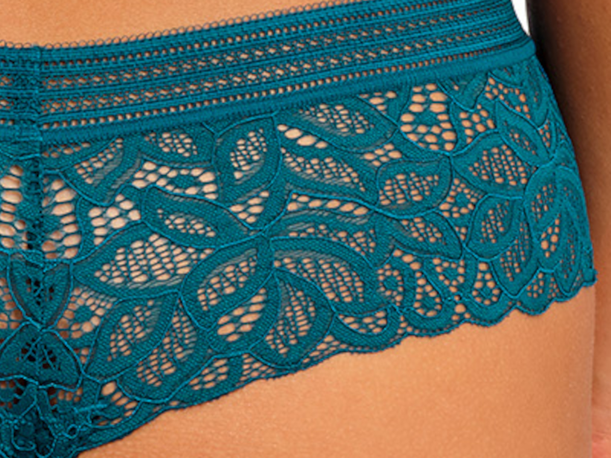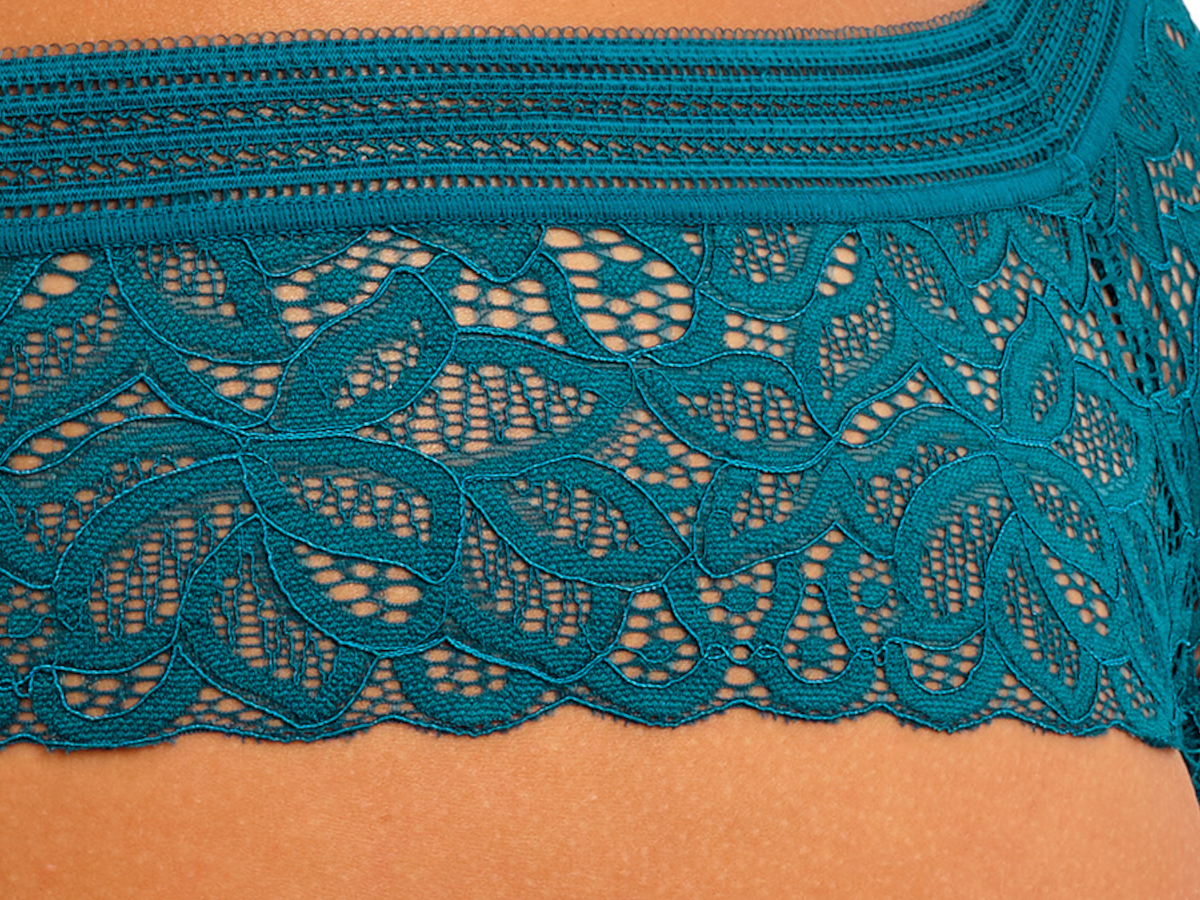 - Materiálové složení: krajka 85% polyamid, 15% elastan; přední díl 73% polyamid, 27% elastan; podšívka předního dílu 85% polyamid, 15% elastan; vnitřní klínek 100% bavlna.